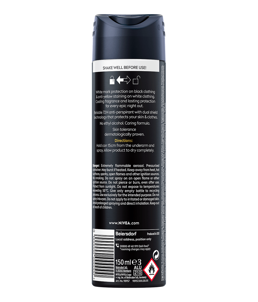 Skvělá neviditelná ochrana díky antiperspirantu pro muže Black & White Epic Night. Proti zápachu, potu i podráždění. Na vašem oblečení nezanechává skvrny ani zbytky. Sprej chrání pokožku až 72 hodin. Nyní s novou intenzivní vůní inspirovanou generací Z.