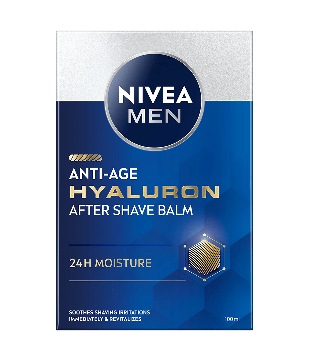 Říká se, že muži zrají jako víno. Ale proč tomu zrání a pleti v boji proti stárnutí trochu nepomoci, že? Kyselina hyaluronová není sprosté slovo, které se týká jen žen a jejich kosmetiky. Je to účinná látka, která je zcela přirozená a tělu vlastní, udržuje pleť hydratovanou a vyhlazuje vrásky zevnitř. A právě kyselinu hyaluronovou najdete v našem balzámu po holení, který kromě toho, že zbavuje pleť prvních známek stárnutí, pleť po holení zklidňuje, regeneruje a zanechává ji příjemně svěží. Sáhněte po tomto elixíru mládí: NIVEA MEN Balzám po holení Hyaluron.