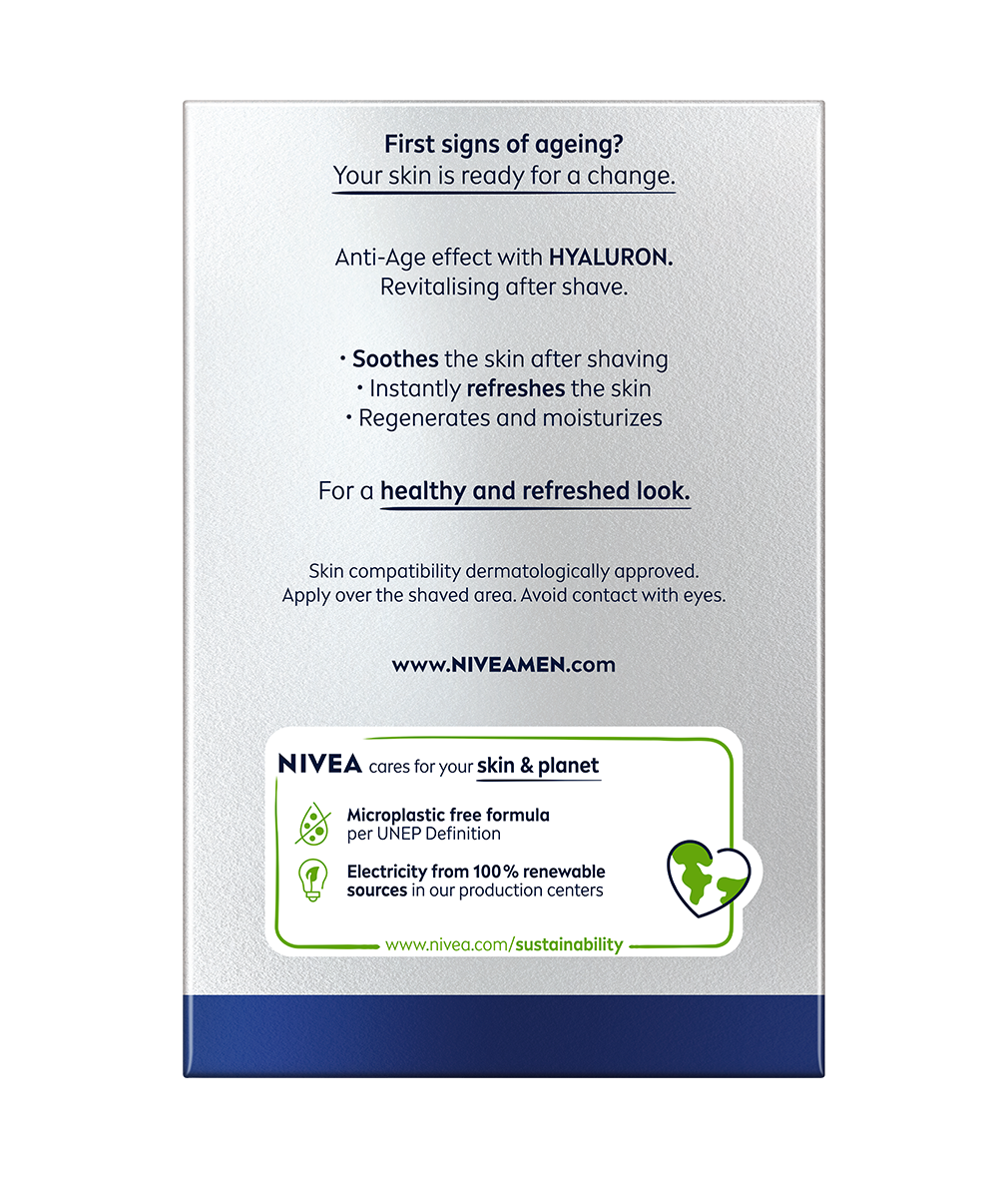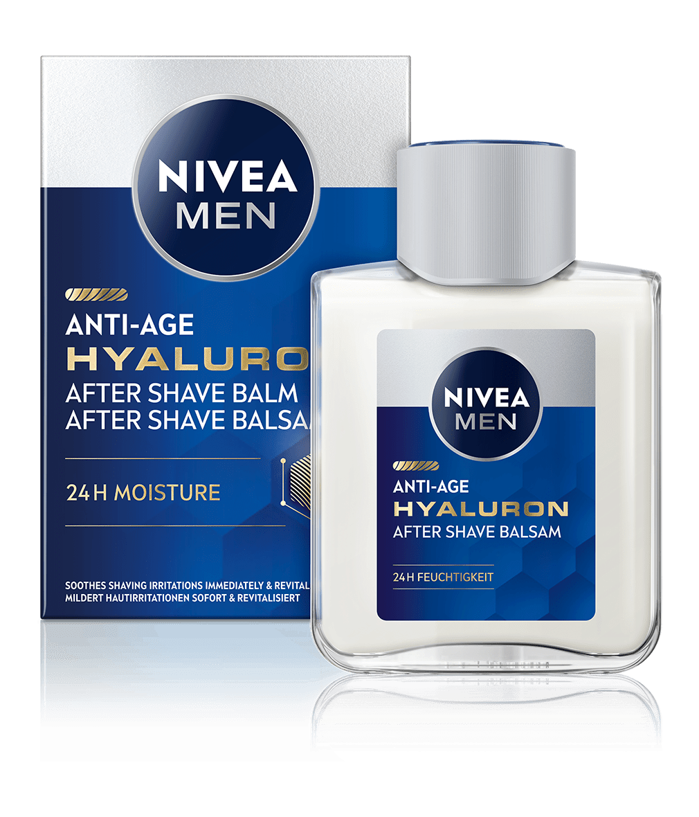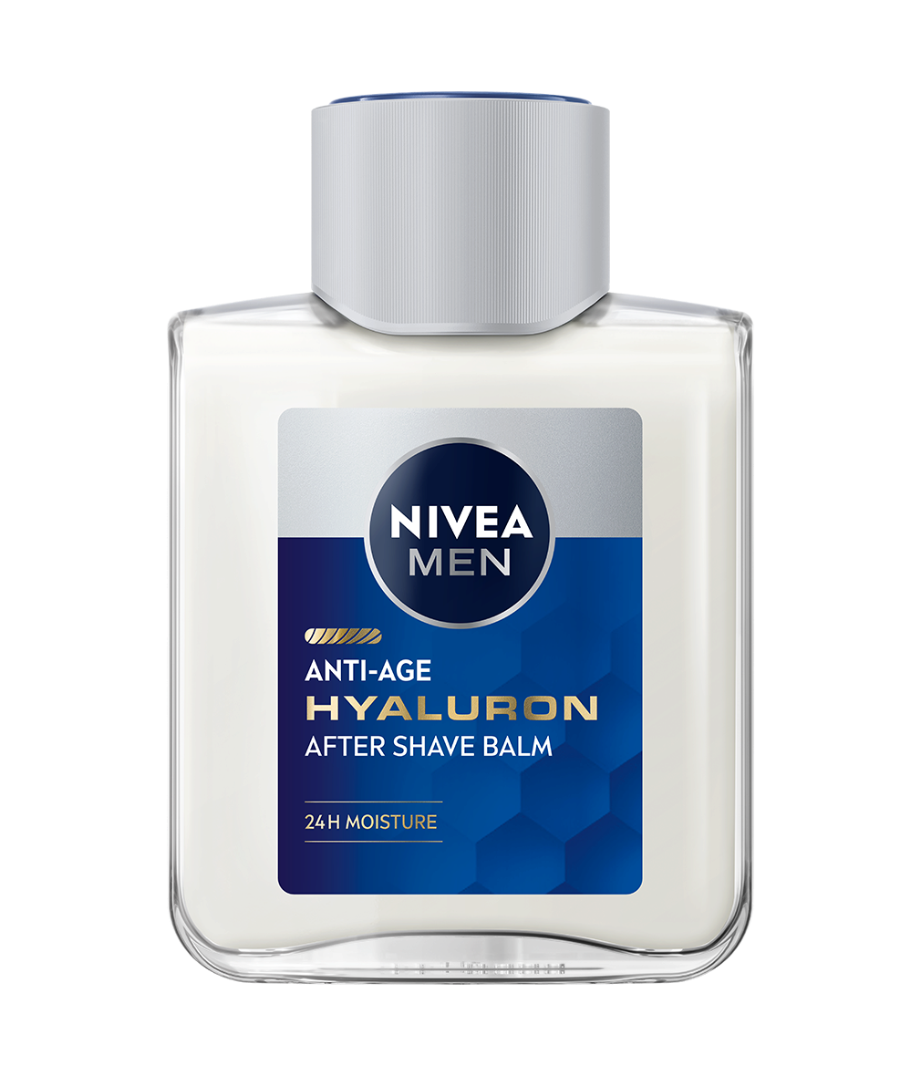 Nedejte na sobě znát přibývající roky. Kyselina hyaluronová zatočí s prvními známkami stárnutí pleti a vyhladí vrásky zevnitř: NIVEA MEN Balzám po holení Hyaluron.
