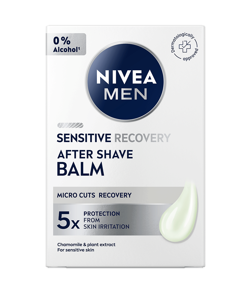 Napnutá pleť po oholení? To chce klid a… do ruky přípravek pro citlivou pleť, který zajistí okamžitou úlevu a rychlou obnovu pleti: NIVEA MEN Balzám po holení Sensitive Recovery.