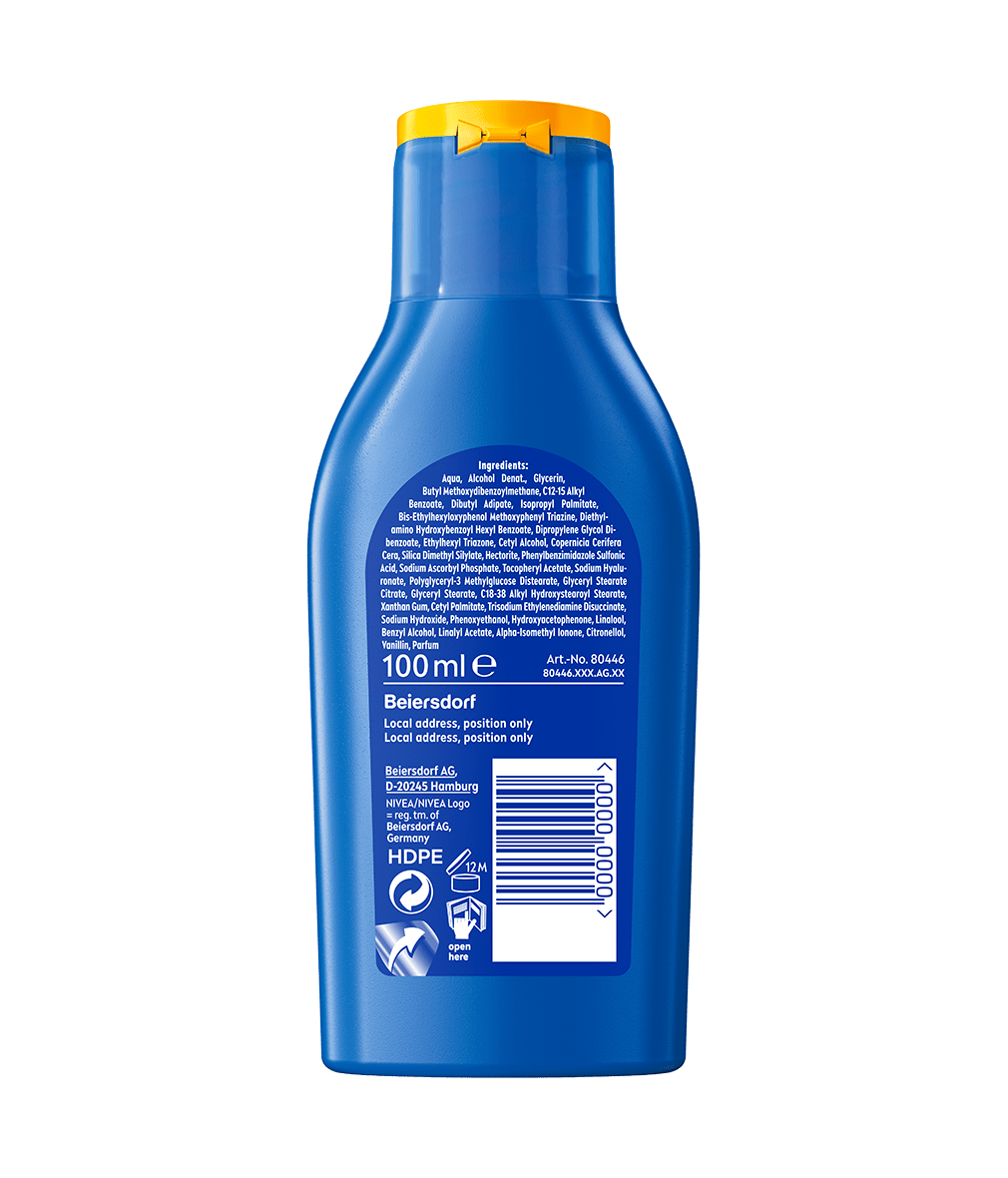 Chraňte svou pokožku před škodlivým UV zářením. Tělové mléko poskytuje ochranu před sluncem díky SPF 50+ a zároveň pokožku hydratuje až na 48 h. Zabalte si s sebou NIVEA Sun Cestovní mléko na opalování SPF 50+ v praktickém cestovním balení.