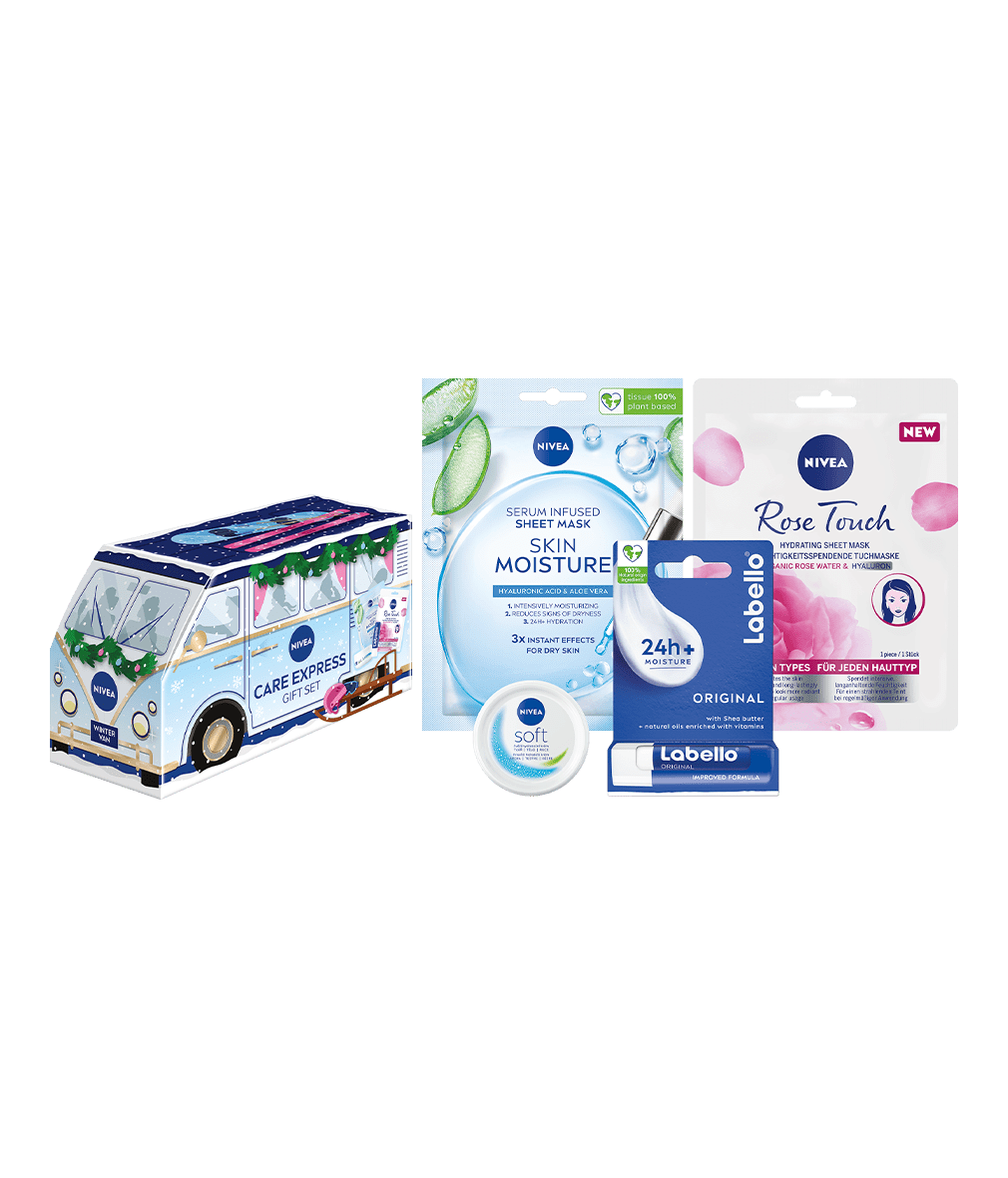 Zaparkujte letos pod stromeček balíček plný péče pro okamžitou hydrataci. Dárkové balení v originálním a hravém designu vánočního minibusu potěší všechny, kdo hledají spolehlivou a okamžitou péči o pleť a pokožku celého těla. O dokonale hebkou a projasněnou pleť se postará dvojice plátýnkových masek. Textilní maska Rose Touch je plná hydratačního séra s kyselinou hyaluronovou, která vyhladí jemné linky a díky růžové vodě také projasní a osvěží pleť. Druhá Hydratační textilní maska pleť hydratuje a také zklidní díky obsahu aloe vera. Masku stačí nanést na vyčištěnou pleť a užít si 10 minut zasloužené relaxace.