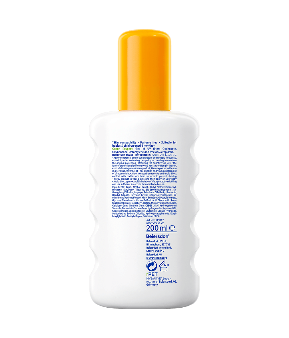 Pečujte o dětskou pokožku a chraňte ji před spálením. Vsaďte na voděodolné složení s vysoce kvalitním UVA/UVB systémem: NIVEA Dětský sprej na opalování Sensitive SPF 50+.