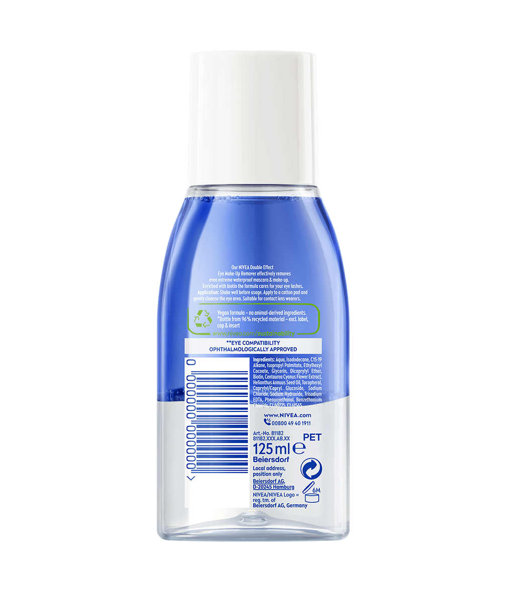 Večerní odlíčení teď zvládnete raz dva! S NIVEA je příjemnou relaxací. Jemná péče odlíčí a ochrání řasy: NIVEA Dvoufázový odličovač očí a make-upu s biotinem.
