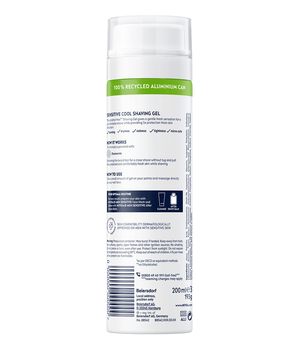 Užijte si chladivý pocit během holení díky šetrnému složení bez alkoholu* obohacenému o heřmánek. Technologie Ultra Glide změkčuje vousy a chrání před podrážděním. Dokonalé oholení zajistí: NIVEA MEN Gel na holení Sensitive Cool.
