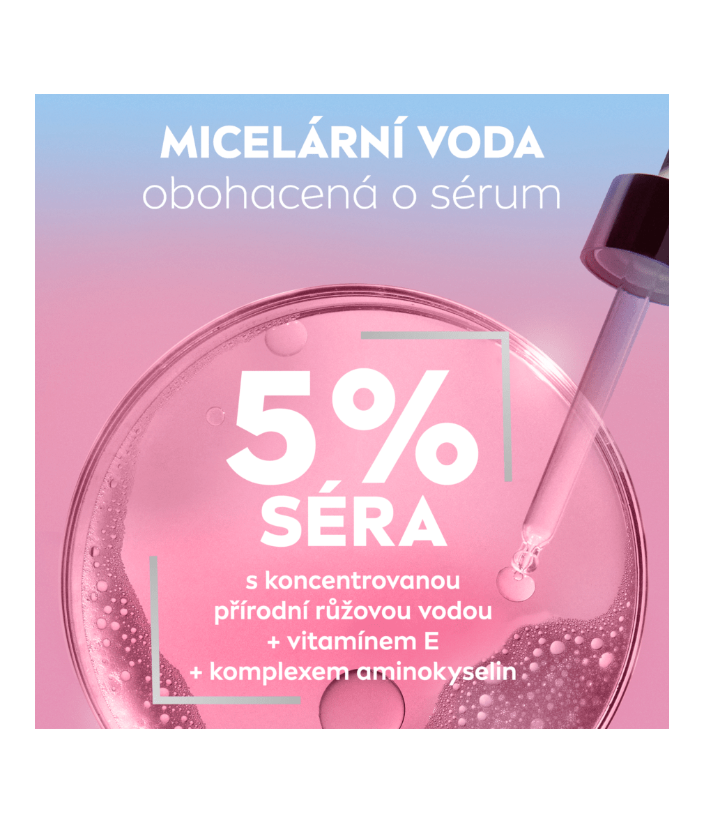 - Složení obsahuje 5 % séra s přírodní růžovou vodou a vitamínem E a komplex aminokyselin.