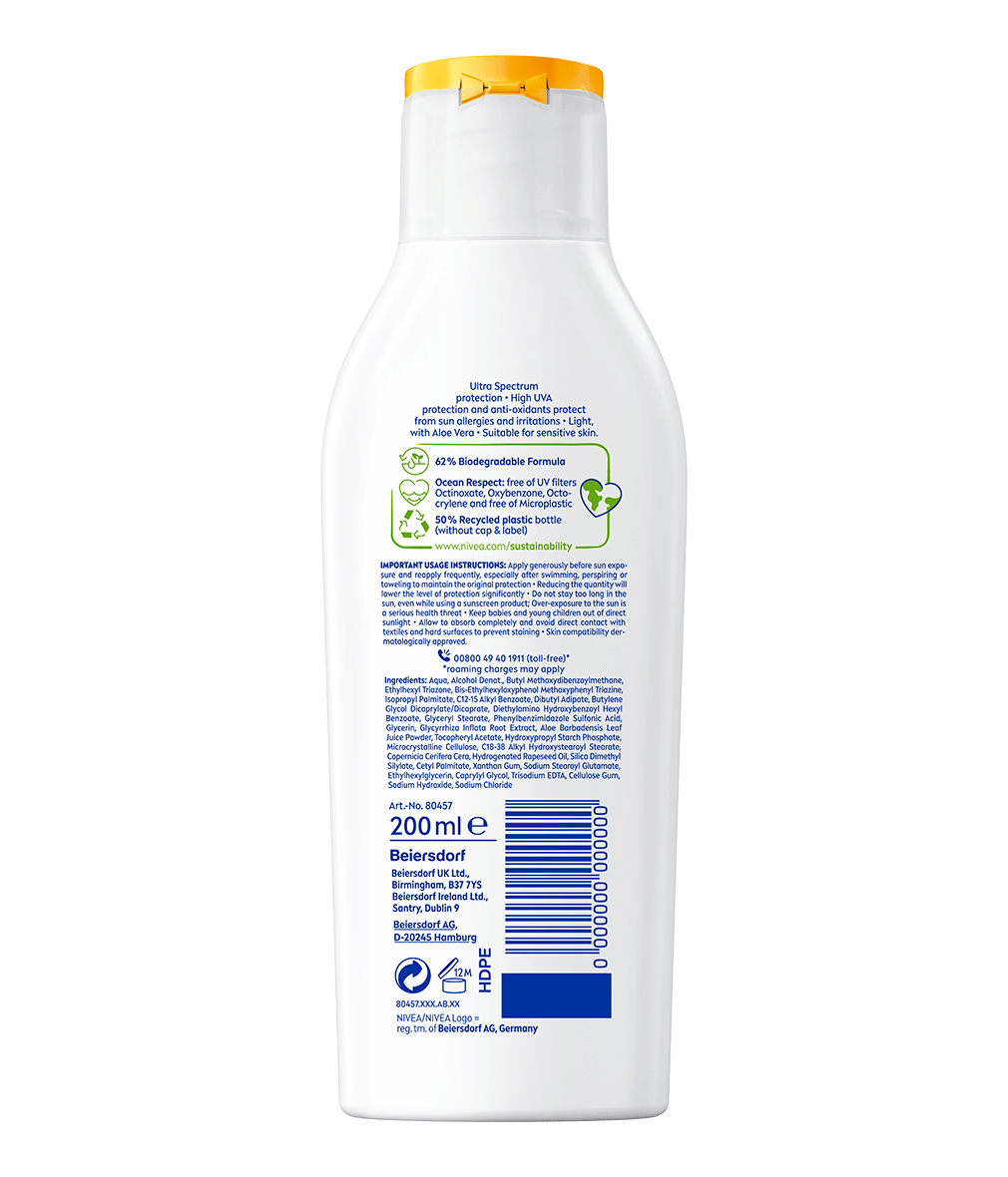 Účinné UVA/UVB filtry blokují škodlivé paprsky a chrání také před vznikem slunečních alergií. Jemné, voděodolně a zcela neparfémované složení se velmi rychle vstřebává a nezanechává mastný film. Díky aloe vera citlivou pokožku okamžitě zklidňuje.