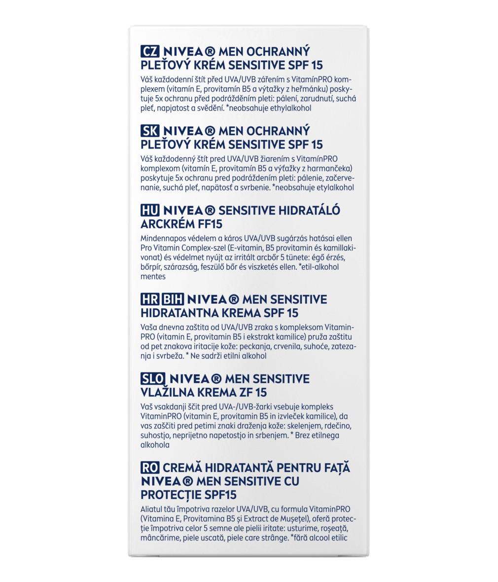 Starejte se o citlivou mužskou pleť tak, jak si zaslouží. Vyzkoušejte péči plnou vitamínů a chraňte svou pleť před podrážděním: NIVEA MEN Ochranný pleťový krém Sensitive SPF 15.