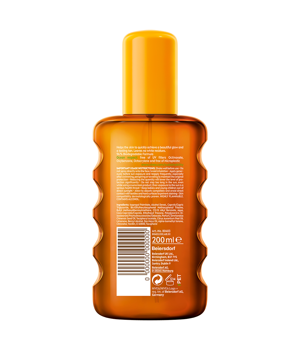 Toužíte po zlatavém odstínu pokožky po opalování? Zajistěte si ho a zároveň chraňte svou pokožku před spálením. Vyzkoušejte: NIVEA Olej na opalování ve spreji Tropical Bronze SPF 6.