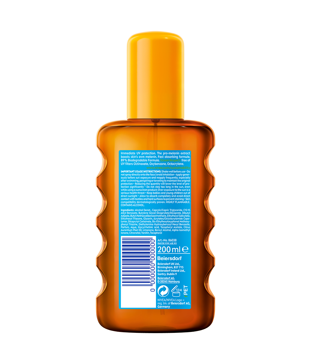 Ochrana před spálením a perfektní opálení zároveň? Díky speciálnímu složení se jedno s druhým nevylučuje: NIVEA Olej na opalování ve spreji Protect & Bronze SPF 30.