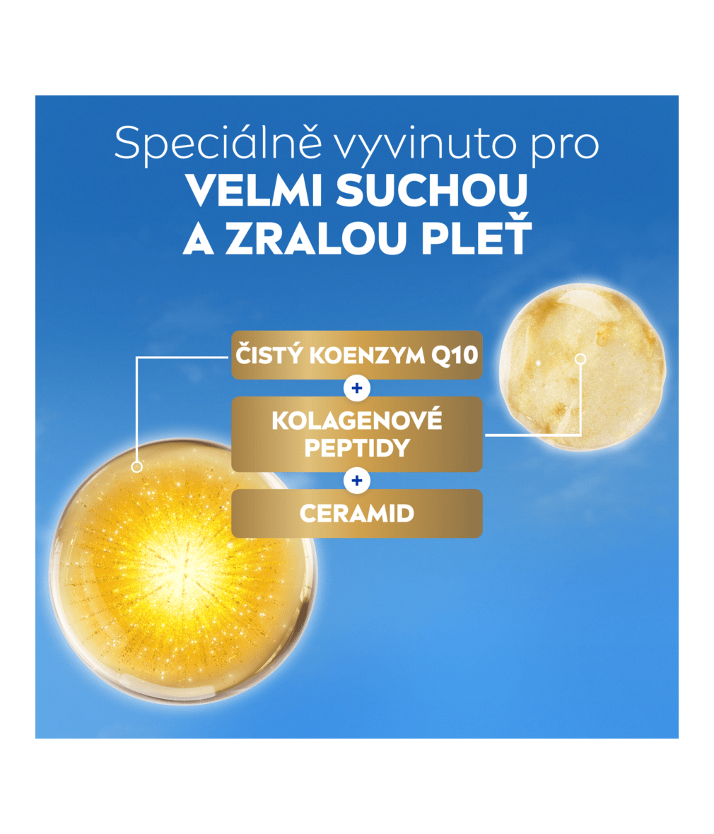 - Obsahuje čistým koenzym Q10, kolagenové peptidy a ceramid.