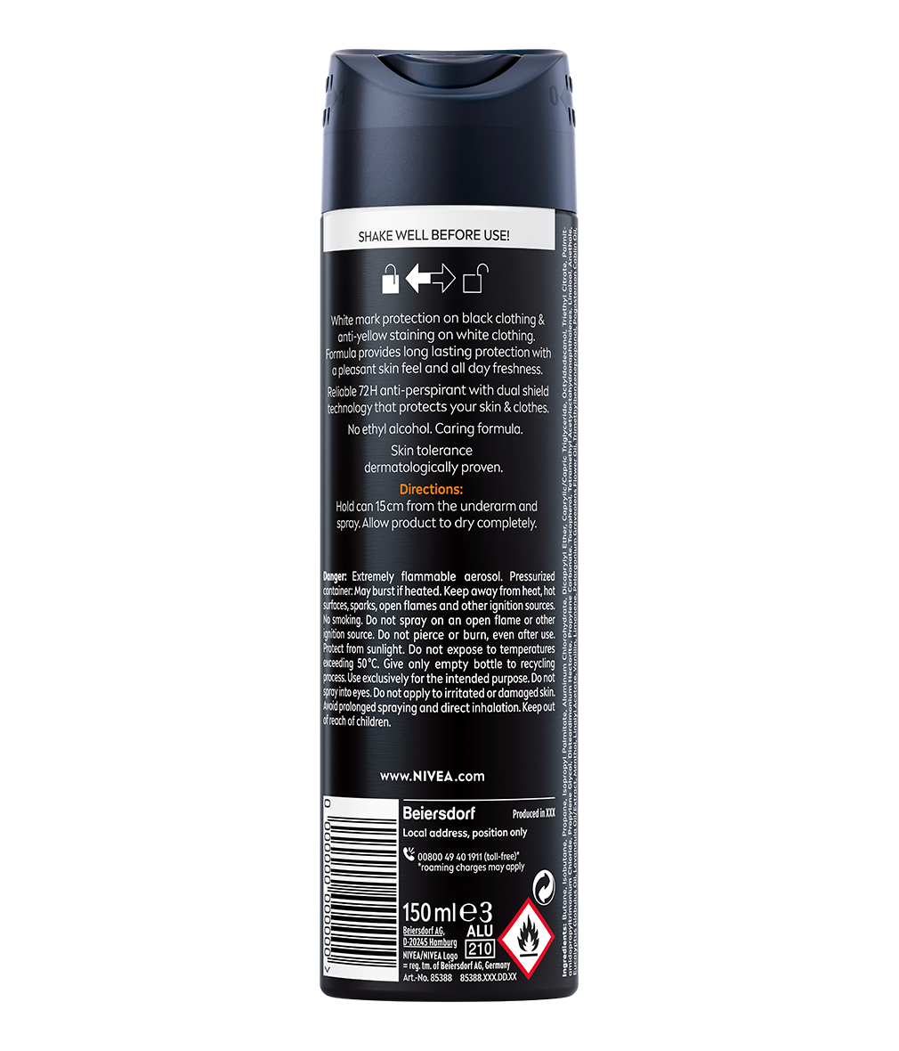 Zvládne všechno, co od něj čekáte. 72hodinovou ochranu před potem a zápachem, ale i oblečení bez bílých nebo žlutých skvrn: NIVEA MEN Antiperspirant sprej Black & White Invisible Ultimate Impact.