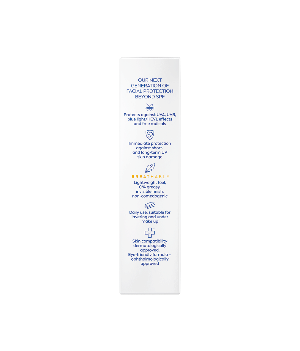 - Okamžitá velmi vysoká ochrana SPF 50+ proti UVA/UVB záření, modrému světlu a volným radikálům.