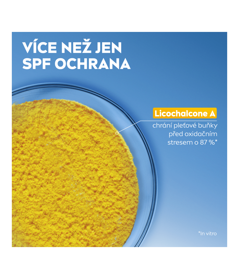 - Patentovaná UV technologie bojuje proti fotostárnutí a Licochalcone A chrání pleťové buňky před oxidačním stresem.