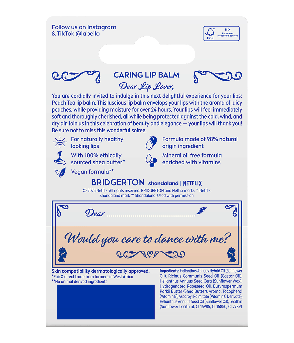 Limitovaná edice. Zrozeno z přátelství Penelope & Colina, které se přemění v lásku, a odvaze odhalit své pravé city. Tónovací balzám dodá rtům bohatou vůni šťavnatých broskví a zároveň je hydratuje více než 24 hodin.