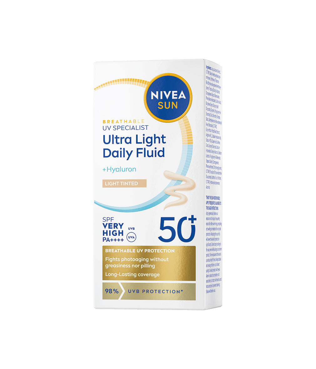 Zažijte pocit dokonale sjednocené a hydratované pleti, která je zároveň chráněná před škodlivým UVA/UVB zářením, modrým světlem a fotostárnutím. Vyzkoušejte: Tónovací ultra lehký denní krém-fluid SPF 50+ světlý, který díky barevným pigmentům kryje nedokonalosti a dodá vaší pleti zdravý vzhled.