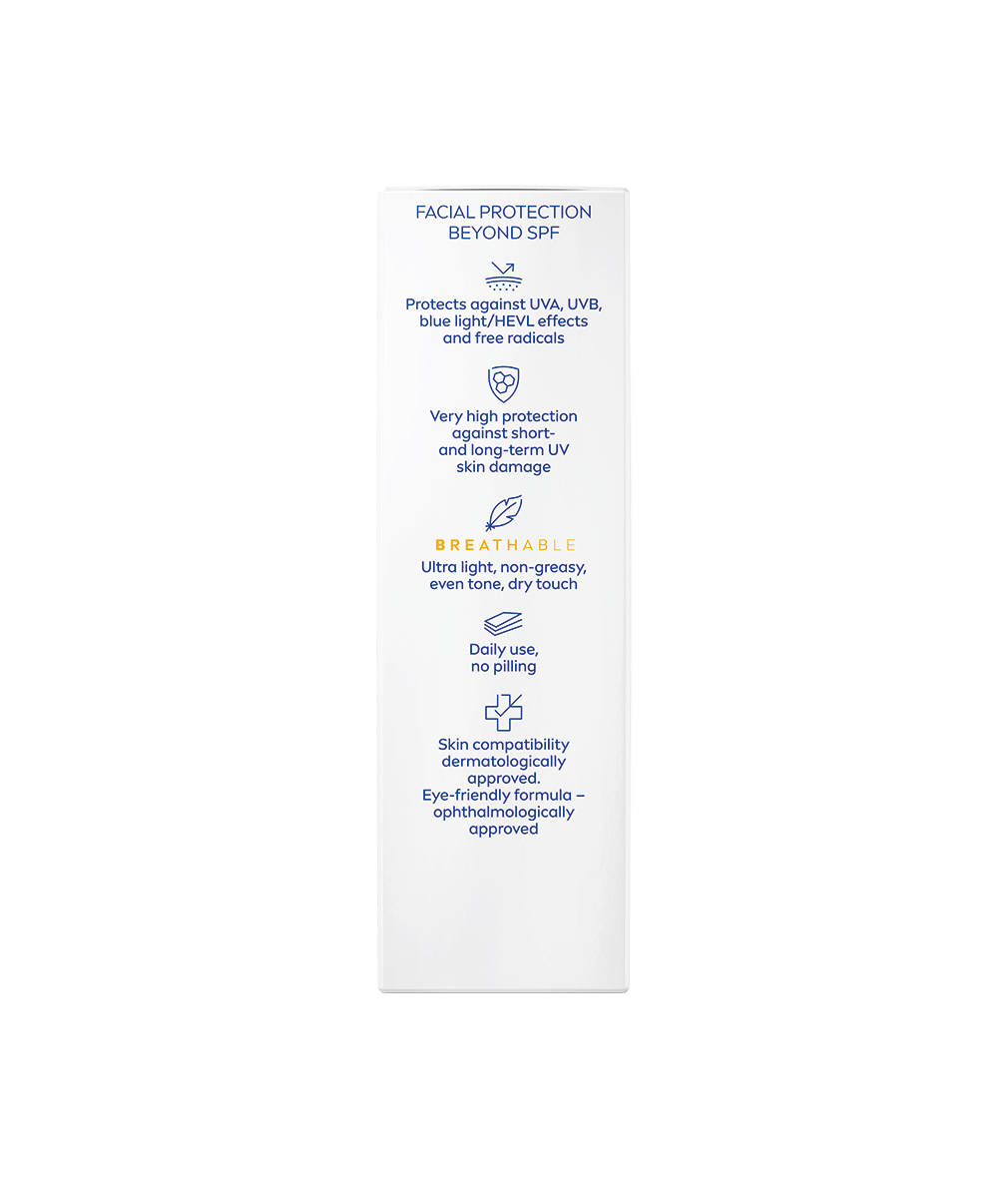 - Vysoká ochrana proti UVA/UVB záření (SPF 50+), modrému světlu, volným radikálům a fotostárnutí.