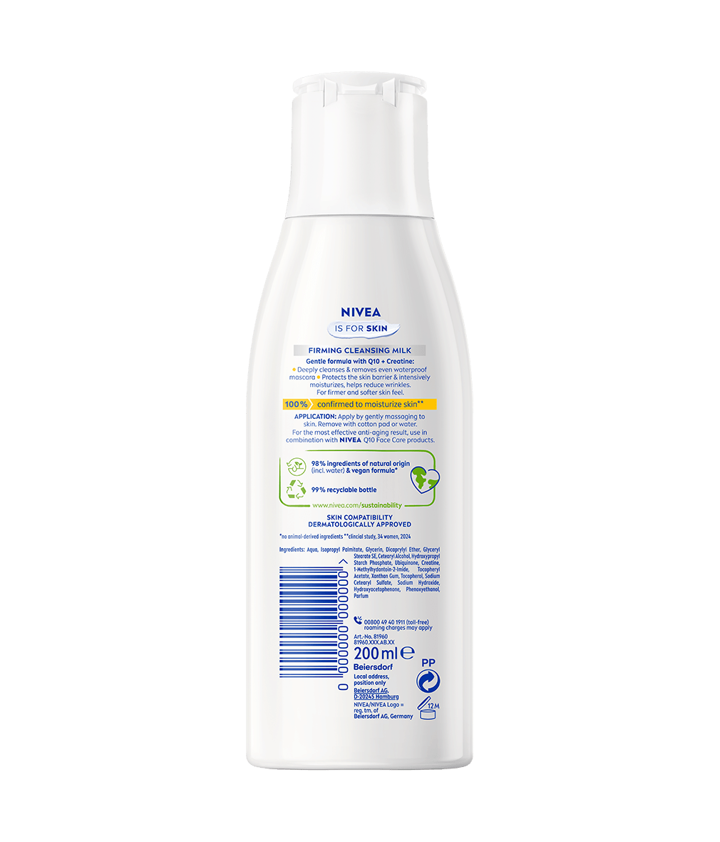 Chraňte svou pleť proti stárnutí již během čištění! Koenzym Q10 a kreatin pomohou vyhladit pleť i redukovat vrásky. Objevte: NIVEA Zpevňující čisticí pleťové mléko Q10 POWER.