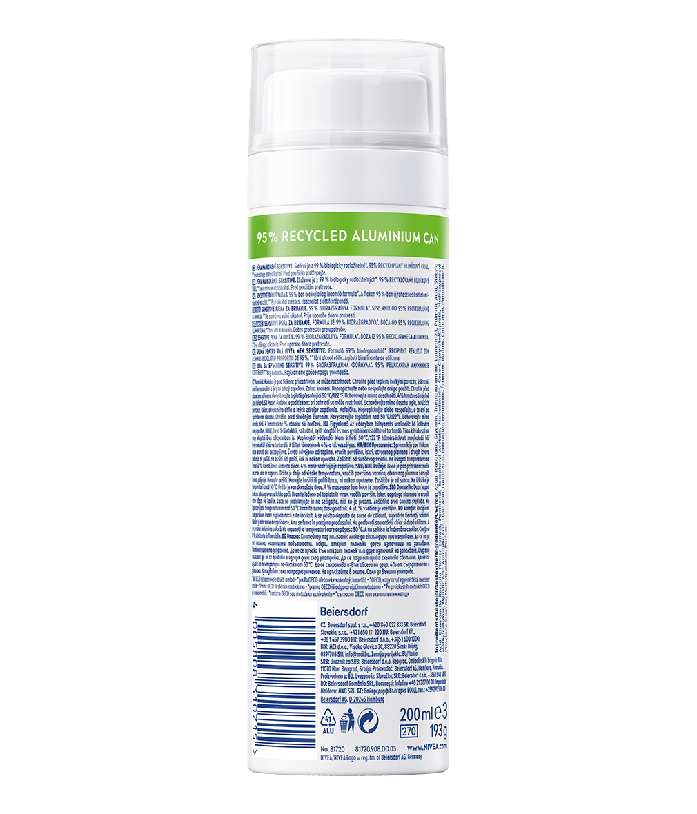 Rozlučte se s podrážděnou pletí! Složení s technologií Ultra Glide změkčuje vousy pro důkladné a dokonale hladké oholení citlivé pleti. Pěna má šetrné složení, které obsahuje zklidňující heřmánek a vitamín E pro hydrataci a regeneraci pleti. Vyzkoušejte: NIVEA MEN Pěna na holení Sensitive.